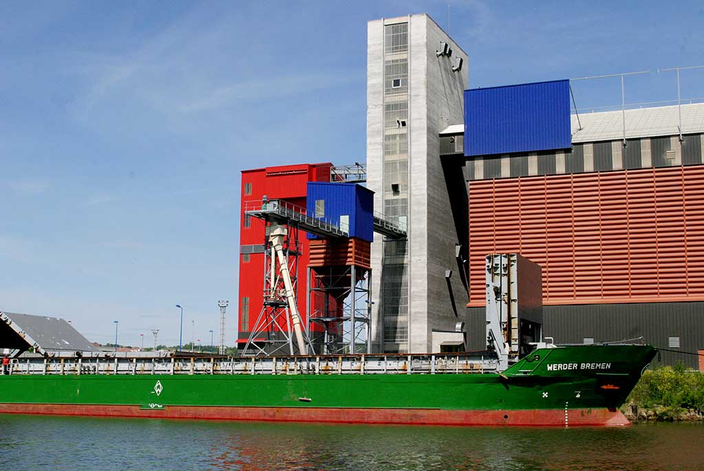 Construction d’un silo portuaire de 65 000 tonnes avec accès fluvial, ferroviaire et routier.